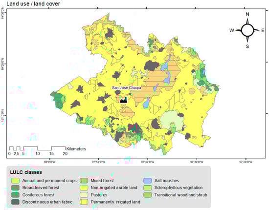 Land-use/land-cover map in the municipalities surrounding San José Chiapa. Prepared by the authors with information from INEGI [36].