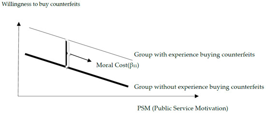 It is expected that PSM will promote ethical consumption, that is, consumers with a high level of PSM will be less willing to buy counterfeits. However, the impact of PSM on ethical consumption may be moderated by previous experiences. For instance, past experience buying counterfeits may intervene between PSM and the purchase of counterfeits. Recent studies suggest that consumers with past experience buying counterfeits are more likely to buy them in the future [15,44]. That is, once having engaged in an ethical or unethical act, individuals are likely to behave the same way in the future. Gino, Norton, and Ariely [15] demonstrated that participants who wore counterfeit sunglasses were more likely to cheat, compared with participants who wore branded sunglasses. Moral disengagement allows people to repackage their beliefs regarding ethically questionable behavior so that the behavior is re-construed as ethically permissible [45,46]. When ethical boundaries are crossed, people are more likely to forget moral codes [44]. In sum, PSM is expected to play a strong role of reminding consumers of ethical codes. However, past experiences buying counterfeits can reduce the intensity of PSM’s impact. There might be significant differences in the impact of PSM on the willingness to buy counterfeits between those with and without past experience buying counterfeits.