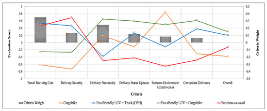 Figure 4. While the 3rd scenario received low scores for the parcel delivery cost and delivery security criteria, this scenario might be the most suitable scenario for receivers due to its superior performance in the other criteria.