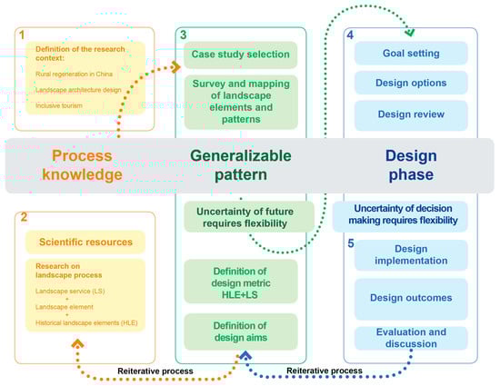 The research by design approach was developed from the Dutch practice at the Faculty of Architecture in Delft [25,26]. The research by design approach was defined by Hauberg [27] and Roggema [28] as follows: “Research by design is a type of academic investigation through which design is explored as a method of inquiry, by the development of a project and also exploring the different materials by which a design is carried out—sketches, mapping, among others” [28,29]. Moreover, research by design is a strategy, as Hauberg stated [26]: “It is used to describe the various ways in which design and research are interconnected when new knowledge is produced about the world through the act of designing. The methodology aims to generate desirable, maybe unexpected, urban perspectives in place of probable, but less desirable, urban developments” [30]. Nassauer and Opdam claimed that design is a common ground for scientists and practitioners to bring scientific knowledge into decision making about landscape change, demonstrating that the pattern–process paradigm should be extended to include a third part, namely design [24]. In this research project the research by design method was applied for the regeneration of Dongjingyu Village, Ji County, China.