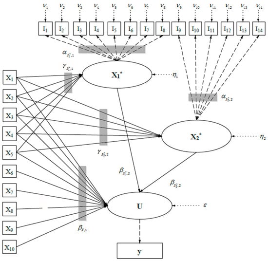 Behavioral science researchers believe that the cognitive activities of the “black box” (such as a traveler’s own attitudes, perceptions, values, lifestyle, etc.), can have a very important influence on choice behavior, but the traditional discrete model cannot be used to analyze the influence of latent variables such as perception and attitude on behavioral response [41]. To this end, some scholars attempt to put the psychological factors in the “black box” into the model, so as to improve the explanatory power of the model. Ben-Akiva et al. [45] combined the discrete choice model and the structural equation model and put forward the ICLV model.
