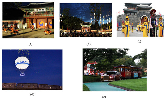 2]. However, according to the previous research on the classification of cultural heritage tourists, various types emerged according to behavior patterns such as visit motivation, experience intensity, time spent, and number of visiting nodes. This is because various people visit according to the value, location, and development situation (related policy, business, etc.) of cultural heritage sites, and how sites are perceived or evaluated by visitors. For example, in the case of Hwaseong Fortress in Korea, the important parts of the castle and the characteristics at the time of construction are well preserved, leading to a high valuation of its integrity and authenticity, and a designation as a UNESCO World Heritage Site in 1997 (see