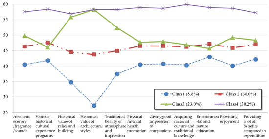 46] classified high-, middle- and low-place value groups according to the sense of place index ranking in Norway’s Svalbard population. The limitation of this method is that it overlooks the various aspects of place value by group. In addition, whereas qualitative research has the advantage of showing various relations between place and users, it relies too heavily on subjective evaluation. The present study aims to classify users according to place value evaluation by applying a latent profile analysis (LPA), which uses a person-centered approach to find similar profiles across various indicators and identifies individual similarities and differences by profile.
