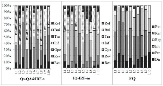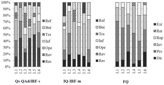The distribution of questions in the class of teacher CHN1. Note: Qs-QA&IRF-s = all questions in Q&A pairs and IRF (single) sequences; Qs-IRF-m = all questions in IRF (multiple) sequences; FQ = follow-up questions.