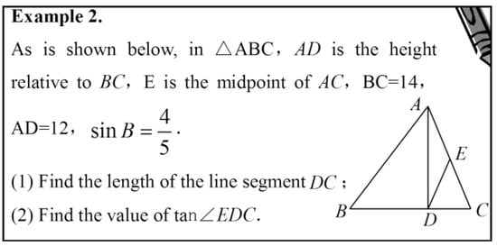 In Episode 2, the teacher was leading the whole class to analyze how to solve the second part of the task (as is shown in Figure 6), namely to find the tangent of angle EDC, which was not in any right triangle in the given diagram. Before this example, the ideas of constructing and converting had been introduced as two main directions for solving similar questions involving non-right (or oblique) triangles. Based on these two ideas, here the teacher asked the students to think about the possible strategies. She did not select any individual student or ask volunteers to answer the questions, but posed the questions to the whole class and elicited the choral responses. In the follow-up phase of the conversation, the teacher consistently employed two types of questions, namely Probing and Inviting comments questions.