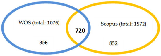 39]. After debugging the databases, the query on these terms in the titles, abstracts, and keywords resulted in 1076 documents in WOS, and 1572 in Scopus.