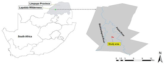 Location of the study area at Lapalala Wilderness, Limpopo province of South Africa.