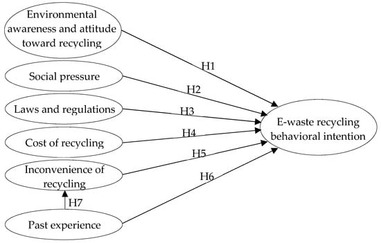 Yu et al. [58] proved that the laws and regulations had a positive effect on the willingness of residents to recycle e-waste. Wang et al. [8] found that promulgation and public spread of the laws and regulations improved environmental awareness among residents and in turn making them ready to recycle e-waste. In a nutshell, laws and regulations ruled by the government clearly play a vital part in e-waste recycling. Accordingly, the following research hypothesis can be concluded:
