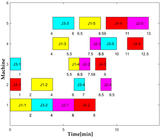 | Step 4 | Combined with the obtained values of decision variables, Tmakespan can be determined by Formula (2) and Etotal can be calculated by Formulae (3) and (4), (6)–(8). |