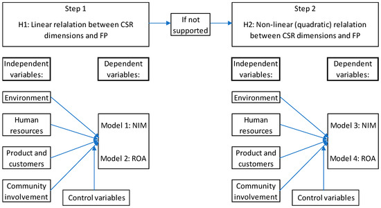 Considering the banking sector, direct studies of the CSR–FP relationship are rare and also offer conflicting evidence. For example, Chih et al. [44] empirically investigated a total of 520 financial firms in 34 countries between the years 2003 and 2005, and concluded that CSR and financial performance were not related. No relationship between CSR and FP was also presented in Soana [22], based on a sample of Italian banks. Similar results were found in Matuszak and Różańska [51], based on a sample of Polish banks. In conflict with the social impact hypothesis, statistical analysis showed that CSR did not significantly predict accounting returns. In contrast, Wu and Shen [32] analyzed 162 banks in 22 countries over 2003–2009, and reported that CSR was positively associated with financial performance in terms of ROA, ROE, net interest income (NII), and noninterest income (NonII) ratios. They also found that CSR was negatively associated with the non-performing loans ratio. Another study of Shen et al. [15], which used data from global banks in 18 countries over 2000–2009, also supported the social impact hypothesis. They confirmed that banks engaging in CSR activities had higher ROA, ROE, NII, and NonII ratios, and a lower NPL ratio, than banks that did not engage in CSR activities. In the context of the recent financial crisis, Cornett et al. [53] proved that US banks, in general, appear to be rewarded for being socially responsible, as ROE is positively and significantly related to CSR scores in both pre-crisis and post-crisis periods. The mixed results of different studies with regard to the CSR–FP relationship in the banking industry may be attributed to measurement issues and model specification, as well as different sample periods. To this day, although the multi-dimensional nature of social performance is widely recognized, studies examining the banking industry have adopted aggregated CSR measures. Previous studies within the banking industry also have not considered nonlinear relationships between CSR and FP. This study proposed to analyze the issue in a more exhaustive way. We focused on the individual CSR dimensions specific to the banking sector, such as human resources, product and customers, and community involvement, and tested both the linear and nonlinear relationships between selected CSR variables and accounting profitability.