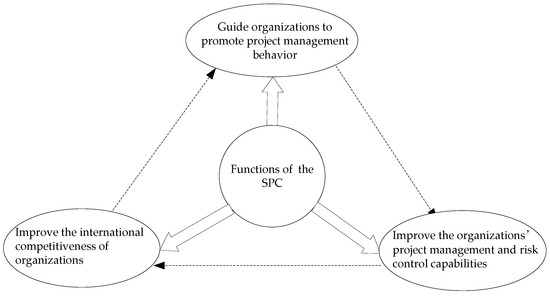 The importance of SPC can be reflected in improving the third function of SPC, i.e., international competitiveness of organizations, individuals, and groups (Figure 1) by facilitating enterprises to apply MBP. Within the MBP trend, building SPC will help organizations, individuals, and groups improve their levels of technical services, engineering quality, and management [7,8,9]. Ultimately, these organizations will achieve a market advantage with higher efficiency and quality and raise their international and sustainable development competitiveness.