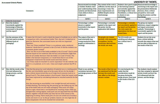 - Level 3—Students show good insight in the learning material and correctly applied the knowledge in their work. Nonetheless, a critical view is absent or non-convincing.