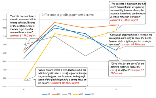 | Understanding | Vague suggestion assigned to the requested perspective; or a concrete suggestion for an alternative perspective | “Remove label. Choose the correct materials, that are compatible with sorting. Transparent/white colors to prevent contamination.” | “Greenwashing. Make the cup green. Emphasis on the open and closure feature.” | “Use logos or images to improve recyclability.” |