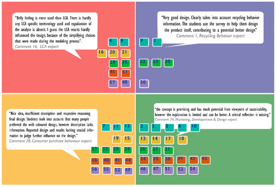 | Applying | Concrete suggestion for improvement that is assigned to the requested perspective | “Explain how to dispose. Recyclability promotion using logos on labelling.” | “Make it easy to recycle for the consumer. Communicate how to recycle and what material it is made from.” | “Clear communication is important on how it works. The sustainability aspect is unclear to the consumer.” |