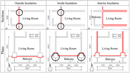 Conversely, the presence of isolated thermal bridges in building envelopes, such as balconies and penetrating insulation layers, influence the energy consumption and thermal comfort of the residents [12]. The total impact of thermal bridges on the heating energy need can be as high as 30%. In Northern and Central Europe, all countries have national regulations that consider the influence of thermal bridges for new buildings. In Southern Europe, 75% of countries have these regulations [13]. Introducing a balcony thermal break either above or below balcony components in a high-rise building in Toronto could improve the overall U-value by 9–18%. The space heating energy consumption could be reduced by 5–13% and space-cooling energy consumption could be improved by less than 1% [14]. In Japan, mitigation methods for building thermal bridges were introduced in the residential energy-saving guidelines [1], but the effects from isolated thermal bridges have not been avoided completely. Meanwhile, the ratio of apartment to house energy used in a business-as-usual (BAU) scenario will reach 50.0% in 2025, which accounts for a significant portion of the energy consumption of Japanese dwellings [15]. The thermal bridges in apartment buildings is an important topic for building energy savings; however, the feasibility of insulation methods in various climate zones has been discussed separately [16]. The climate varieties should be considered when evaluating the method.