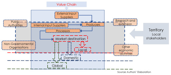 - The contribution of different governance models to ensure the valorisation of producers’ know-how and local resources. Governance is a complex feature with several implications which are not easy to assess [25]. In this case, governance is considered the ability of the system to manage quality and network relationships with the aim of improving market efficiency and social cohesion;