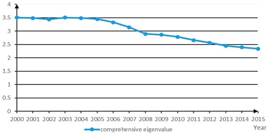 Past research and the analysis above was used to establish an evaluation index system, as shown in Table 1. Using this established index system, the corresponding data [81] from 2000–2015 for China were collected and used. The results of the specific gravity calculation are shown in Table 2.