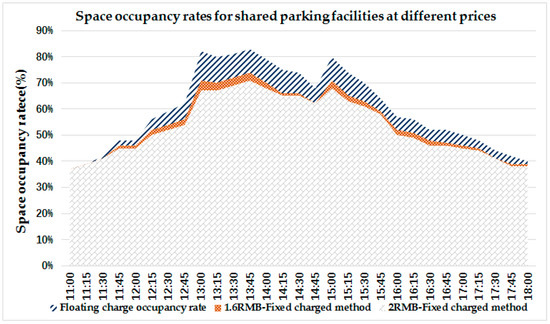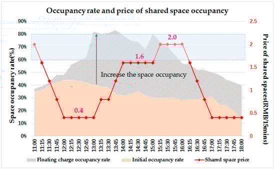 When the price of the shared space is fixed, the peak occupancy rate can reach more than 60% after open sharing, but when the price changes from 2 RMB/15 min to 1.6 RMB/15 min, the change in occupancy rate is not obvious, only increasing by about 3%.