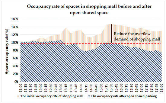 As shown in Figure 4, the administrative office parking lot was more fully utilized through open sharing, attracting and transferring the overflow demand from the shopping mall.