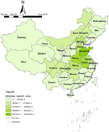 We also utilized the forest pest-control area and control rate to represent the control measures of each province, depending on the different proportion in which they had adopted chemical control, biochemistry, artificial physics, or biological control measures to mitigate forest pest infestation of timber, bamboo, or seedlings. The control rate is the ratio of the forest pest-control area to forest pest area. We showed the pest-control rate on the map that could represent the status of control measures taken more directly than the control area, thus eliminating the disturbance of each province’s territorial area. We also show the airplane control area in Figure 7, as this measure could reflect the payment, technology, pest damage serious degree. and even the attention degree of each adopted province.