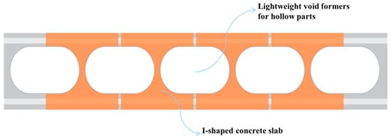The void slab system (Figure 1) is a new development that enhances the structural performance of a slab through reduced weight and increased stiffness [,,]. It is a method to improve the strength of a slab in supporting a load, through the effective utilisation of its moment of inertia. In addition, the method enables the reduction of the slab weight by using lightweight void formers in its middle section, where the structural performance is less important compared to other portions in the slab. It is also recognised that the void slab system would be able to reduce the environmental impacts of concrete through reduced CO2 emissions and energy consumption. However, research on environmental impacts of the void slab system is relatively scant compared to other topics such as structural performance (flexural and shear), optimal void ratio, and shapes of void formers [,,,,].