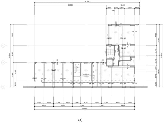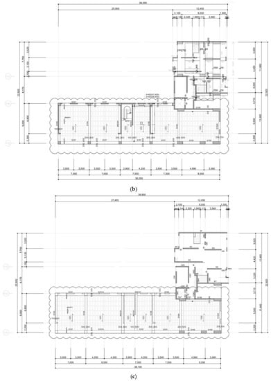 Structural design of floors (a) Structural design of the first floor; (b) Structural design of the slab on the second floor; (c) Structural design of the slab on the third floor.