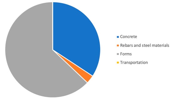The CO2 emissions during the production stage indicate the occurrence of CO2 from the major components used in the slab system. In this study, the major components of the ordinary reinforced concrete slab system were ready-mixed concrete, reinforcing bars, and moulds. Likewise, the major components of the void slab system were void formers, anchoring steel materials, and deck plates, as well as the ordinary reinforced concrete slab components. The environmental impact information of the construction materials applicable to this study was collected from the National Life Cycle Inventory Database (KLCI DB), as shown in Table 2 []. In the case of the construction materials not listed in KLCI DB, a foreign life cycle inventory database was applied [].