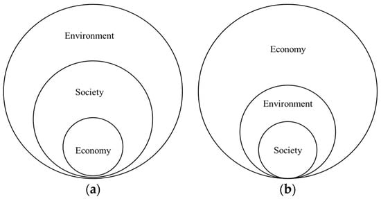 The downside of this metaphor is that the economic, environmental, and social legs look separate and equal (see Figure 4). Dawe and Ryan [53] in their paper argue that the environment is “the floor upon which the stool, or any sustainable development model, must stand” as the economic and social dimensions are obsolete without it. Figure 4 proves that the longest leg is economic, while environmental is the second longest and social is the shortest, thus resulting in its failing to be sustainable.