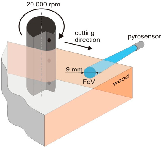 Following the experimental measurement, optimum methods for tool temperature monitoring in the process of wood milling were determined to allow the researchers to acquire accurate data associated with the changes in temperature depending upon technological parameters of milling. It emerged that measurement using the pyrometer with the temperature in the range from 15–90 °C is the optimal way to measure tool temperature. Due to 10:1 optics and the high-resolution processor for accurate measurement, the distance of 90 mm between the pyrometer and the tool surface was found to have the best result in the target spot diameter of 9 mm on the tool surface (