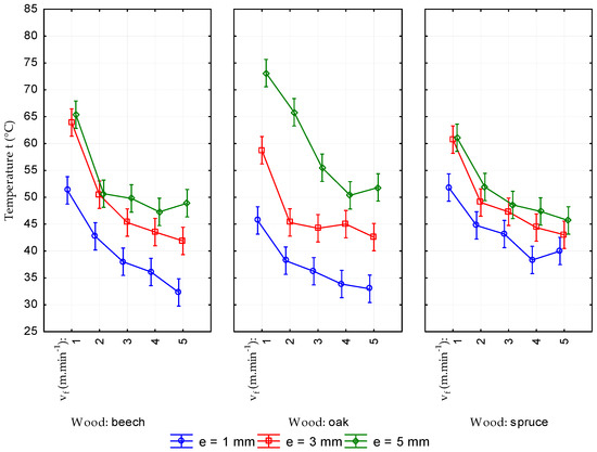 30]. Tool temperature is affected, besides other things, by the material machined and its anatomical properties (e.g., wood species, grain direction, wood defects), physical properties (moisture content―in some cases the temperature increases with the increase in moisture content, in other cases it decreases, density) and mechanical properties (strength, hardness etc.) [