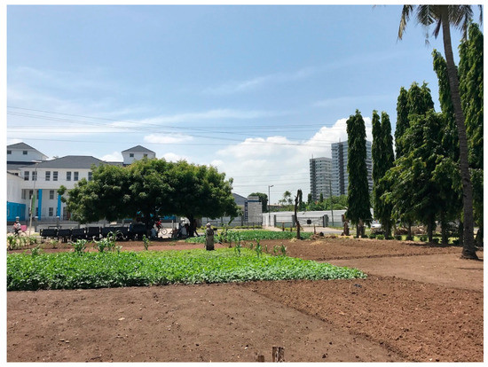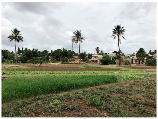 City authorities have often refused to accept agriculture as a formal urban land use; it is often tolerated as temporary use of land until the space would be developed for other uses [31,126]. Urban agriculture remains an illegal practice in most African cities due to health concerns, the view that it poses a threat to the environment (e.g., through inappropriate use of contaminated irrigation water or improper use of agrochemicals) [143,144]. In Tanzania, for example, the urban agricultural system is not recognised by the central and local government due to its informal state and unregulated nature, but is tolerated as a temporary use [126]. Inner-city agriculture is often found along roadsides (see Figure 1), near railway tracks, under power lines (see Figure 2) and in marginal zones such as river valleys (see Figure 3). However, many open spaces are often considered unsuitable for urban agriculture due to urban development aspirations and concerns about soil and water pollution as well as hazards such as flooding. Due to the lack of support from decision-makers, many farmers, for whom urban agriculture is an essential source of income, are experiencing uncertain access to land and property [31,85,126,128].