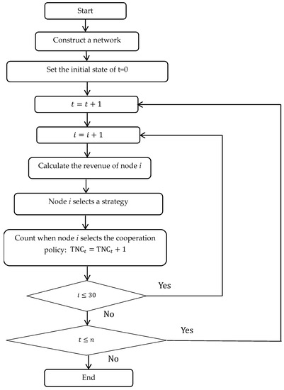 - Xie, F.J. Cooperative incentives for the evolution of game behavior on complex networks. J. Shanghai Jiaotong Univ. 2015, 49, 1256–1262. (In Chinese) [Google Scholar]