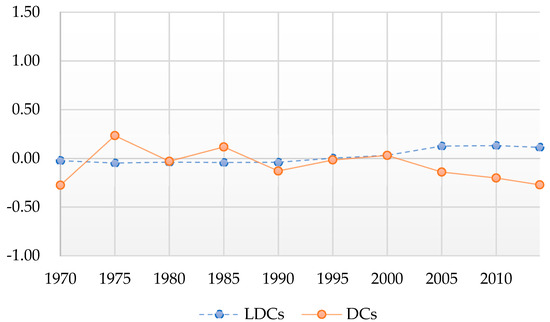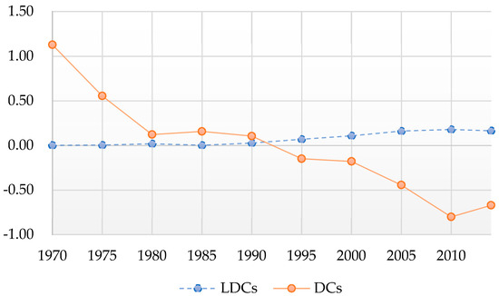 | DCs | −1.275 ** | (0.405) | −1.672 *** | (0.263) |