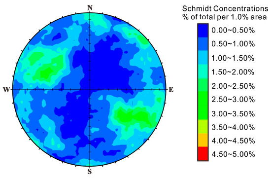 - Vollmer, F.W. C program for automatic contouring of spherical orientation data using a modified Kamb method. Comput. Geosci. 1995, 21, 31–49. [Google Scholar] [CrossRef]