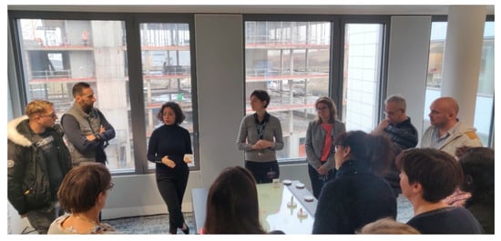 The use of participatory, collaborative, and/or interactive approaches is quite common in urban planning. The aim of such approaches is to embed stakeholders in the process of making decisions on urban planning that will affect urban activities. Participatory approaches are required to overcome the lack of knowledge exchange between stakeholders [19,20,21]. While participatory approaches are usually low-tech and take the form of public meetings, studies proposed the use of technology, usually a geographical information system (GIS), in such contexts [22,23]. Later, the use of GIS was extended to a public-wide context [24], which is referred to as a public participation GIS (PPGIS) [25,26,27]. The authors experienced the use of a PPGIS with a tangible tabletop for making collective decisions on urban logistics [28]. Given the positive feedback of the PPGIS experience with a tangible tabletop, the authors chose to renew the tangible PPGIS approach for the purpose of construction logistics.