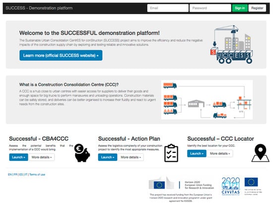 The three tools are all available on the same platform, illustrated in Figure 3, allowing the end-user to create a personal account and benefit from a more convenient and personal browsing experience. The SUCCESSFUL-CCC Locator DSS is integrated in the SUCCESSFUL-CBA4CCC DSS so the decision-maker can skip some steps when estimating distance and access time.