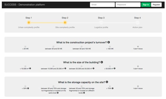 The SUCCESSFUL-Action Plan DSS provides both local authorities and construction companies with a framework for making the construction logistics and supply chain more efficient. It is designed to assess the logistics complexity of a construction project and explore solutions adapted to its profile among about 70 solutions that address the logistics challenges. Because each city and each construction project are different, the set of selected measures may drastically change. For example, a construction site with a very limited available space and located in a congested area may require a clear and effective strategy to reduce the negative externalities caused by its logistics. On the other hand, a construction site located in a new urban area may require a less proactive and costly set of mitigating actions.