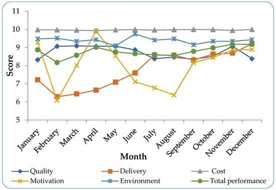 Figure 7 shows the evolution of performance for quality, cost, delivery, motivation and environmental functions in January–December.
