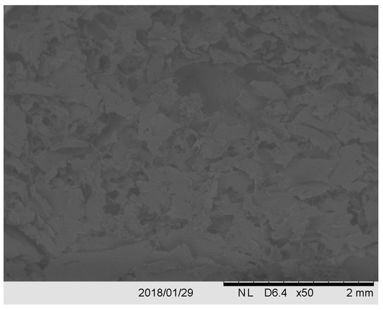 Broccoli waste from the sorting of frozen material was used to produce freeze-dried bars with addition of xanthan gum (0.5%) and locust bean gum (0.5%). The use of a combination of hydrocolloids allowed obtaining a delicate and glassy broccoli gel, that showed a high degree of aeration. The internal structure of the freeze-dried broccoli gel was delicate, porous, which is certainly influenced by the air bubbles introduced into the gel mass while mixing the gel components (Figure 7). Similar results were obtained Ciurzyńska et al. [83] and Ciurzyńska et al. [84], who studied the structure of freeze-dried gels based on a mixture of xanthan gum and locust bean gum of various compositions, and also showed that structure is porous, with variable sized pores due to the cracking of numerous air bubbles.
