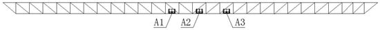 The dynamic response in the mid-span is the maximum for the first vertical mode. Therefore, in the following in situ test, three measurement points are arranged near the mid-span and are presented in Figure 13.