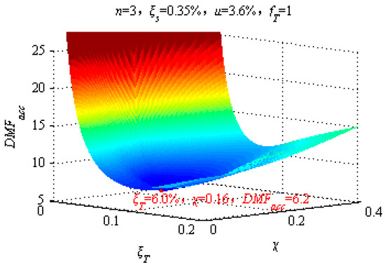 In Figure 6, it is clear that in this case, the optimal TMD damping ratio is 4.9%, and the optimal frequency bandwidth is 0.225.