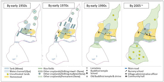 - Perera, J. Change and Settlement: A Portrait of a Sri Lankan Village; Institute for the Study of Languages and Cultures of Asia and Africa: Tokyo, Japan, 1985. [Google Scholar]