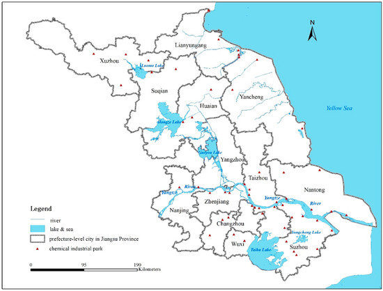 Fifty-three chemical parks’ location in Jiangsu Province.