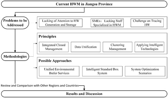 In this section, the main principles and possible approaches for HW management are suggested based on previous studies to provide solutions for unaddressed HW management problems in Jiangsu Province (Figure 4).