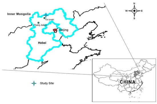The experiment was conducted from 2015 to 2017 in Guyuan County, northern Hebei Province, China (Figure 1); this zone has a national observation field station at the southern margin of Inner Mongolia’s Xilingol Grassland, with a latitude of 41°45’52” N, a longitude of 115°39’51” E, and an altitude of 1400 m. The annual average temperature was 2.5 °C, and the annual mean rainfall was 400 mm, primarily distributed between July and September. This region is considered a semi-arid grassland. The major soil of this experimental field was kastanozems or meadow soil, with the organic matter content found to be approximately 2.5% and the pH value 7.0–8.5. Leymus chinensis is the dominant species in this steppe with absolute superiority; other zonal plants include some pasture plants, such as Cleistogenes squarrosa (Trin.) Keng, Melissitus ruthenicus (L.) C. W. Chang, Stipa krylovii Roshev., and Hedysarum gmelinii Ledeb., and some forbs, such as Potentilla tanacetifolia Willd. Ex Schlecht., Artemisia frigida Willd., Thalictrumsquarrosum Steph. Ex Willd., Bupleurum chinensis DC., Saposhnikovia divaricate (Trucz.) Schischk., Potentilla bifurca L., Allium senescens L., Allium tenuissimum L., Heteropappus altaicus (Willd.) Novopokr., Artemisia eriopoda Bge. and Polygonum glaucum Willd.