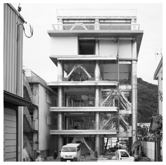 As the first thing to be done, it is a matter of utmost importance to analyze whether the means already provided are actually sufficient and efficient and whether they will remain so in the future. Evacuation towers spread out as a sort of unfinished, obsolete version of Follies designed by Bernard Tschumi for the La Villete park in Paris in the 1980s changed both the rural flatland and the coastal skyline (Figure 3). Extremely rigid in structure, both literally and figuratively speaking, they seem a wasted opportunity, as it may be extremely difficult to turn them into dual spaces a posteriori or to modify them should their capacity or efficiency be rated negatively. This is connected to the economy and demography of the region and the future of small towns such as Susaki, which are vulnerable and in danger of disappearing soon.