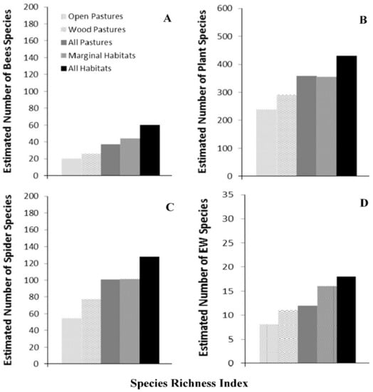 - Schulze, C.H.; Waltert, M.; Kessler, P.J.; Pitopang, R.; Veddeler, D.; Mühlenberg, M.; Gradstein, S.R.; Leuschner, C.; Steffan-Dewenter, I.; Tscharntke, T. Biodiversity indicator groups of tropical land-use systems: Comparing plants, birds, and insects. Ecol. Appl. 2004, 14, 1321–1333. [Google Scholar] [CrossRef]