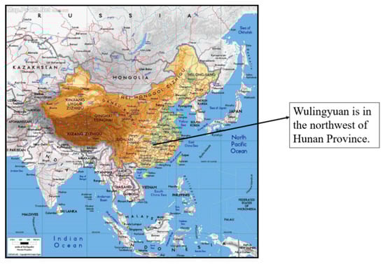 Tourism development in China has long been under the control of government policy and institutional reform [,], which makes it an ideal area to explore tourism institutions. Wulingyuan, a district of Zhangjiajie in China, is selected as the specific case (Figure 1). It is located in the central Wuling Mountain of Hunan Province, and is comprised of four scenic areas, including Zhangjiajie National Forest Park, Tianzi Mountain Nature Reserve, Suoxiyu Nature Reserve, and Yangjiajie Nature Reserve. Notably, tourism has become the only “pillar” industry of Wulingyuan, accounting for over 90% of its GDP in recent years. Its accommodation sector mainly caters to tourists on sightseeing and leisure tours.
