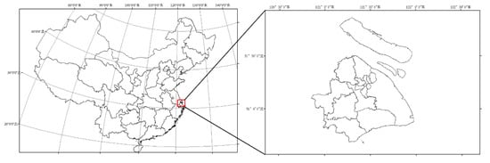 Shanghai is located in the Yangtze River Delta. It sits on the south edge of the Yangtze River estuary and in the middle portion of the east coast of China (Figure 1). It has 16 districts, with a total area of 6340.5 km2, a length of 120 km from north to south, and a width of 100 km from east to west.
