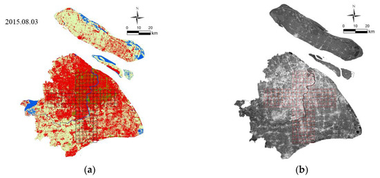 The LST data, at thermal infrared spatial resolutions of 100 m and 120 m, were obtained from Landsat-8 TIRS and TM/ETM+. In order to unify spatial resolution, the 120 m resolution was resampled to 100 m. Retrieval of LST was based on the atmospheric radiation transfer equation [27]. Initially, a four-year interval between 2000 to 2016 was selected. However, in order to unify the weather background to study UHI, the RS image for each year was sampled in July and August, when Shanghai is the hottest, with sunny weather and no clouds or wind. Finally, RS images from 2000, 2004, 2007, and 2015 were selected. Information on the selected images and the average temperature in July and August of each year from the meteorological station are listed in Table 1.